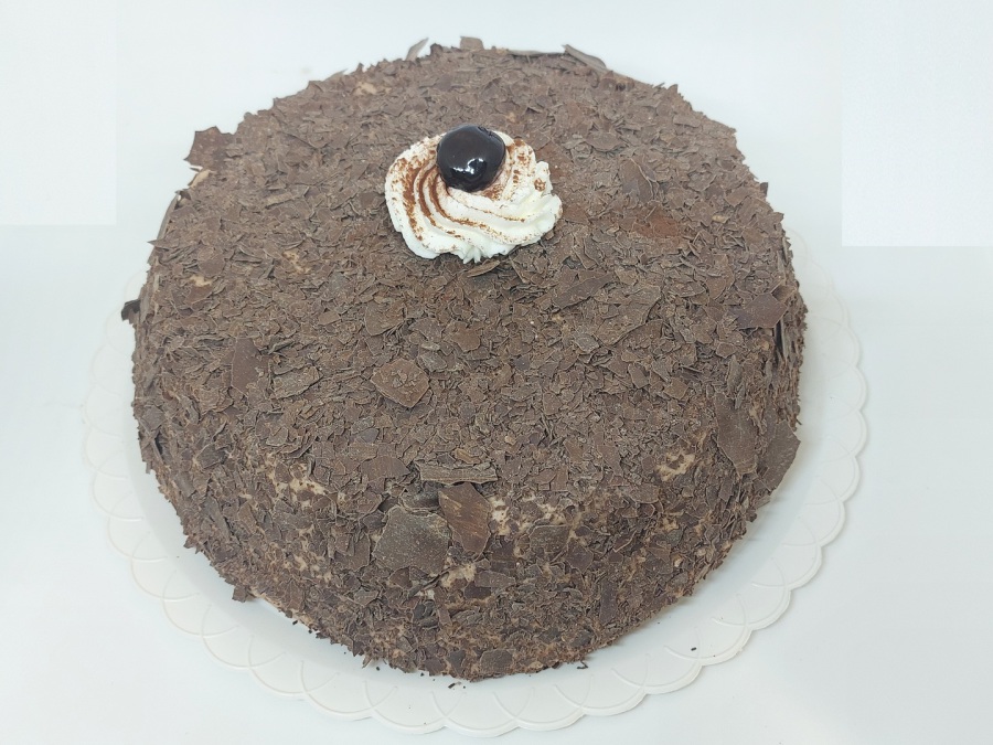 SELVA NEGRA: TRUFA, NATA, GUINDA AMARENA, BIZCOCHO CACAO Y LÁMINAS DE CHOCOLATE